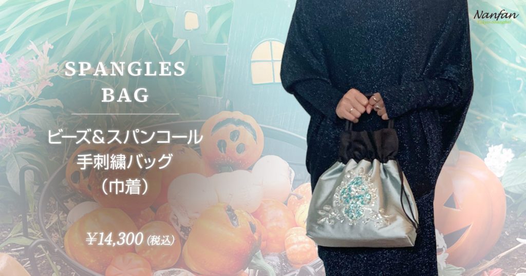 ビーズ&スパンコール手刺繍バッグ(巾着)