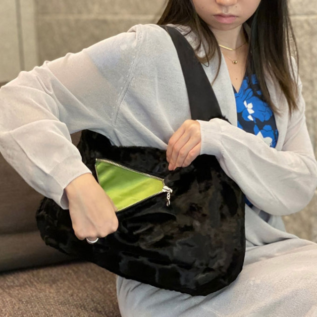 高級感があるのに環境にやさしいエコファーのバッグなのはうれしいポイント。